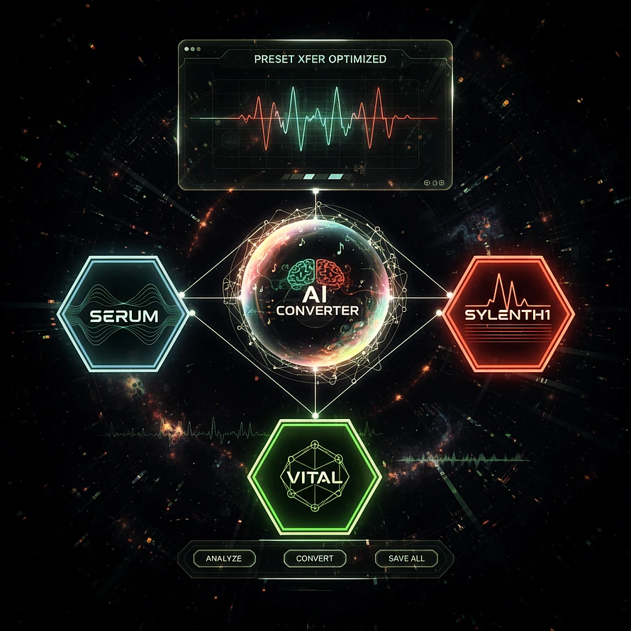 This new tool can convert presets between Xfer Serum 1 (and simple Serum 2 presets), Sylenth1, and Vital (more to come) with over 90% accuracy!